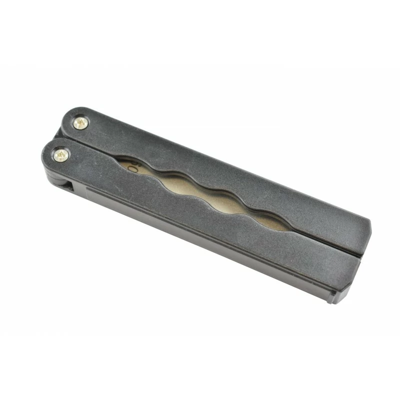 La pierre est composée de diamants de 2 types de grains différents : un grain grossier 400 pour faire un réaffutage de vos lames émoussées et un grain fin 600 pour ramener un bord tranchant comme un rasoir. Un marquage avec le numéro du grain est présent sur chacune des faces de la pierre. Avec cet aiguiseur pliant, vous pourrez obtenir d’excellents résultats d’affûtage très rapidement.
