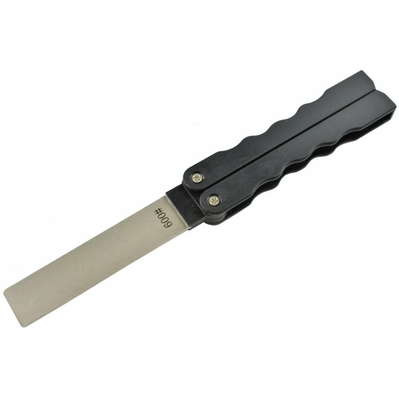 Grâce à son manche pliable à la façon d’un couteau papillon, la pierre à aiguiser en diamant sera protégée lors de vos déplacements. Ouvert, l’affûteur a une longueur de 23cm alors que fermé, il ne fait que 12.5cm !