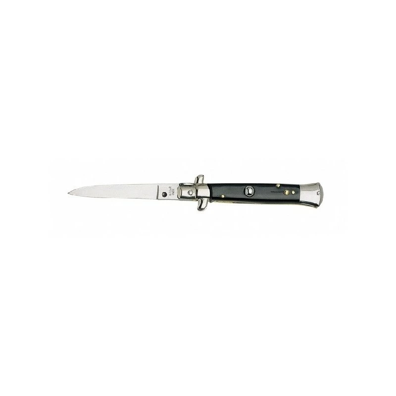 Voici un petit couteau automatique au manche façon corne avec mitre basculante, il mesure 11cm de long et est muni de la référence 2120. La petite taille de manche rend le transport du couteau cran d’arrêt automatique très facile en toutes circonstances, il n’aura aucun mal à se ranger dans une petite poche ou un petit sac à dos. La lame elle est toujours fabriquée en acier inoxydable et mesure 7cm de long, résistante à la corrosion, elle peut être personnalisée au moyen d’une gravure.