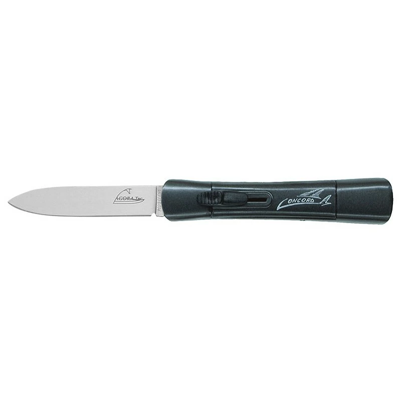 Un design tout en finesse pour ce couteau Consorzio Coltellinai Concord (référence 257). Il s’agit d’un couteau automatique OTF (ouverture frontale) avec manche fabriqué en résine synthétique. Sur ce même manche, on peut apercevoir le logo Concord en blanc, avec juste à côté un bouton glissière servant à éjecter la lame droit devant. D’ailleurs, sachez que la lame mesure 85mm de longueur, au profil spear point, elle est fabriquée en acier inoxydable 440. Comme d’habitude, le-couteau.com vous permet de la personnaliser par procédé gravure (voir bouton ci-dessous). Très fin, ce couteau automatique OTF Consorzio Coltellinai Concord sera très facile à transporter. Au quotidien, il suffira de le glisser dans la poche pour toujours l’avoir à disposition en cas de besoin. Couteau conçu et fabriqué en Italie, à Maniago.