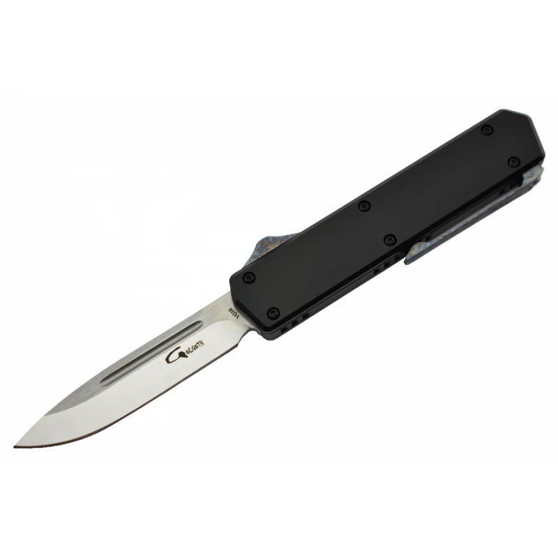 Offrant une réactivité à toute épreuve, le couteau automatique OTF Golgoth G13DP+ possède un manche noir en aluminium anodisé. Sa longueur de 115mm fait qu’il sera facilement transportable au quotidien. Il accueille un bouton à faire coulisser (servant à éjecter la lame) ainsi qu’un clip sur le côté, deux éléments en titane anodisé crazy. Cette anodisation apporte couleur et originalité : vous allez l’adorer !