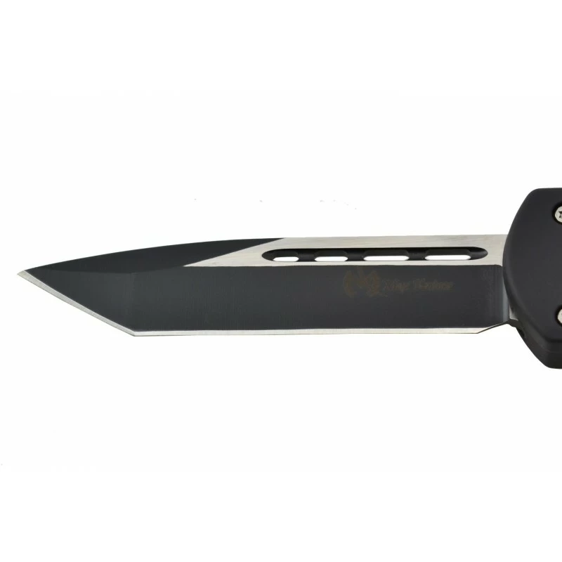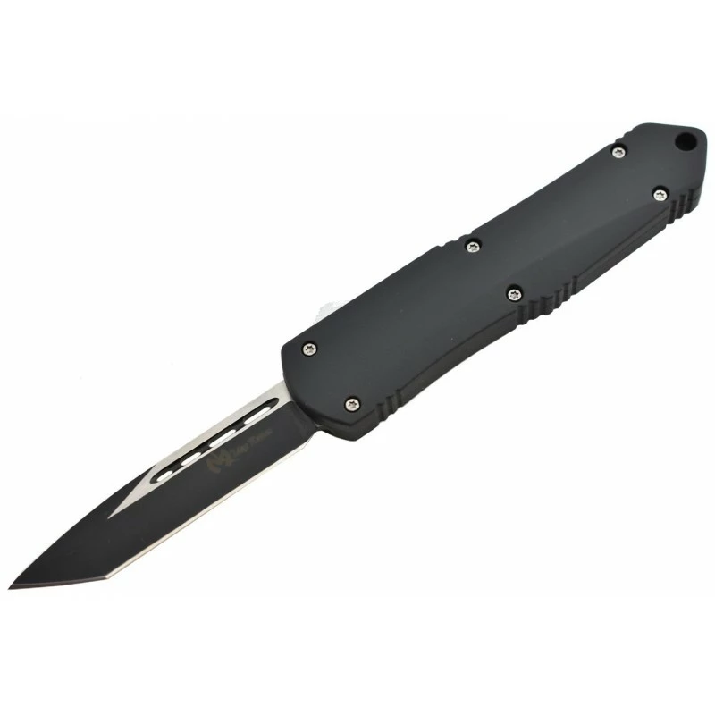 Ce couteau automatique OTF, Max Knives MKO43T, a une lame de forme tanto pour une apparence tactique ainsi qu’une puissance accrue. Ă€ la finition bicolore (noire et grise), la lame de 8cm est fabriquĂ©e en acier inoxydable ce qui garantit une bonne rĂ©sistance Ă la corrosion/rouille. Les petits trous sur la partie supĂ©rieure ne manquent pas d’apporter une touche design supplĂ©mentaire.