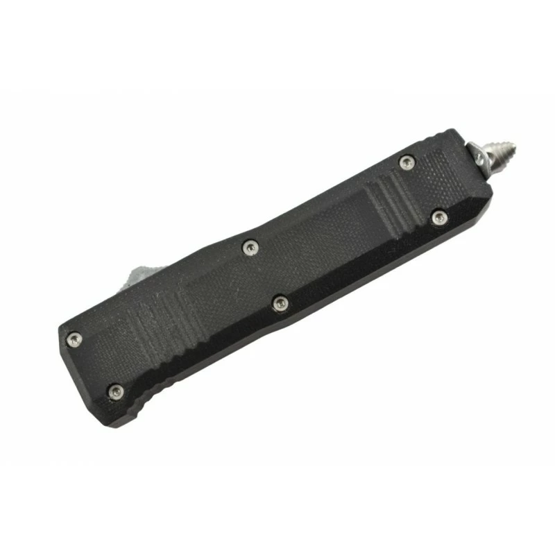 Le manche du couteau automatique OTF MKO4G10NDP Max Knives est conçu en G10 noir, matĂ©riau moderne convaincant aussi bien sur le plan esthĂ©tique que technique. Il loge un bouton poussoir Ă l’origine d’une ouverture de lame par l’avant, de façon extrĂŞmement rapide. Avec clip-ceinture et orifice pour lanière amĂ©liorant encore un peu plus la transportabilitĂ©. Brise-vitre de 10mm en bout pour les situations d’urgence.