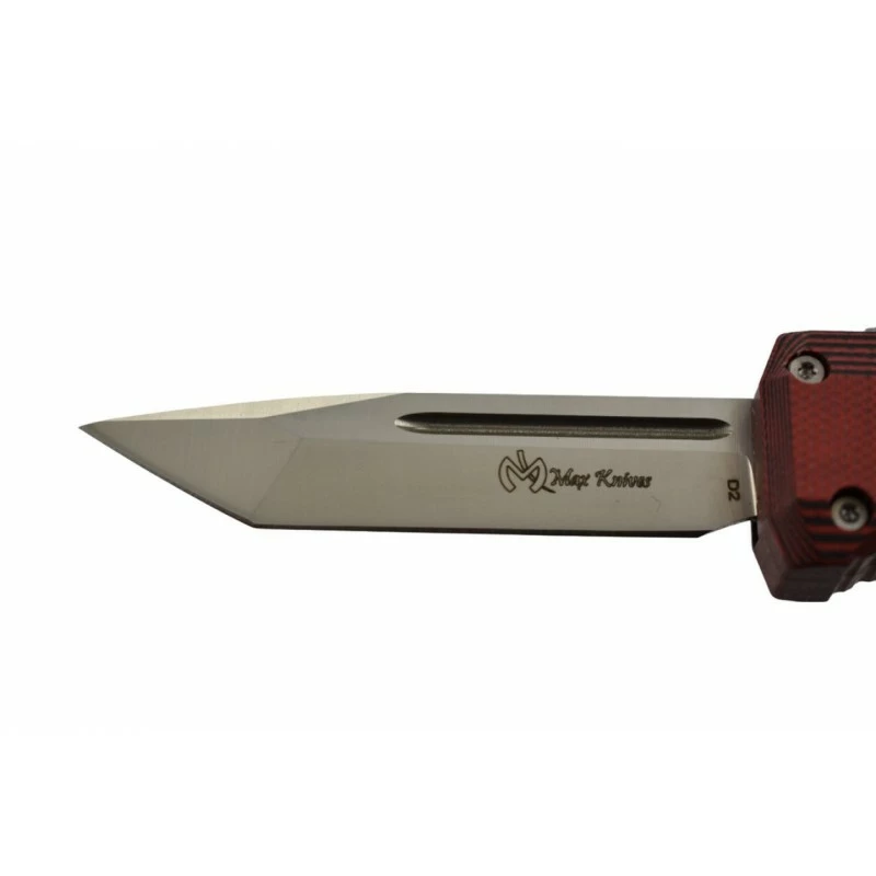 Ce Max Knives MKO4G10RT est un couteau automatique OTF conciliant facilité de transport, performances et design. De petite taille (95mm), son manche est fait de G10 rouge à la finition légèrement assombrie à l’origine d’un aspect vieilli. Ce matériau moderne est à la fois ergonomique, léger et durable.