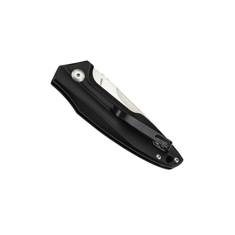 Ce couteau automatique Puma-Tec 305211 est pourvu d’un manche en aluminium noir mesurant 11cm de long, offrant ainsi la possibilité de le transporter facilement au quotidien. C’est d’autant plus vrai qu’un clip de la même couleur, à savoir noir, est présent de l’autre côté de la poignée. Il permet de transporter le couteau automatique à la ceinture ou à la poche en toute simplicité ! Ce modèle vous sera livré dans un beau coffret prêt à offrir, ainsi qu’avec un étui en nylon noir comme le montre les différentes images du produit. Il est important de souligner le fait que le manche en aluminium est largement rainuré ce qui lui confère un certain style ainsi qu’une meilleure ergonomie.