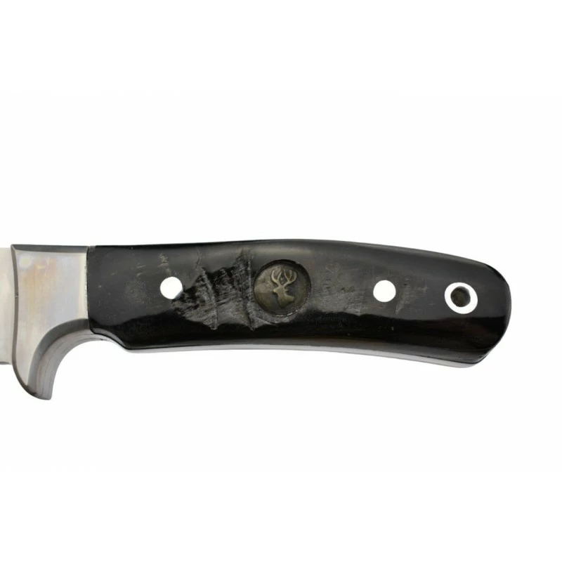 CĂ´tĂ© manche, le poignard IF2 In’Forest est conçu en corne de bĂ©lier, agrĂ©mentĂ© d’un motif cerf et d’un trou de lanière. La corne de bĂ©lier Ă©tant un produit naturel, le design du manche peut lĂ©gèrement diffĂ©rer de celui de la photo. LivrĂ© avec son Ă©tui en cuir.