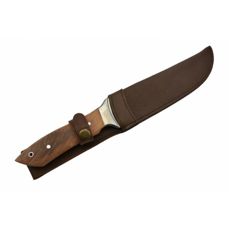 Le manche du poignard IF4 In’Forest est confectionnĂ© en bois olivier caractĂ©risĂ© par une teinte claire et un veinage plus foncĂ©. Il est dĂ©corĂ© d’un écusson rond avec motif cerf et comprend un trou de lanière amĂ©liorant la transportabilitĂ©. Son étui cuir Ă fermeture bouton pression permet d’en prendre le plus grand soin lors des dĂ©placements. Un ensemble complet Ă un prix dĂ©fiant toute concurrence !