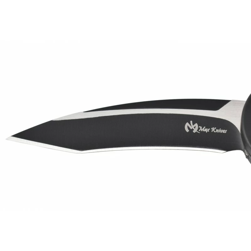 Le manche est Ă©purĂ© et sombre avec des motifs et des nuances noirs. Il est en aluminium, enrichi de fibre de carbone pour une lĂ©gèretĂ©, une adresse et une soliditĂ© maximales. Il est dotĂ© d’une Ă©pingle qui se fixe Ă une ceinture et d’un anneau. Ce dernier sert de moyen de rĂ©tention, ergonomique ou pour y glisser une cordelette. Ce manche est surmontĂ© d’une lame Ă tranchant simple et Ă la courbure prononcĂ©e, emblĂ©matique du Karambit. UsinĂ©e par fraiseuse CNC, elle est en acier 420 anti-corrosion, renforcĂ©e au plasma noir, pour un tranchant longue durĂ©e et un aiguisage facilitĂ©. Sa pointe triangulaire, sa surface noire, traversĂ©e de lignes gris mĂ©tallisĂ©, font de ce couteau un objet visuellement apprĂ©ciable. Un Ă©tui de protection en nylon l’accompagne.