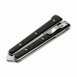 Ce très joli couteau papillon est doté d’un manche inox avec revêtement camouflage, et d’une lame de 10,5 cm au tranchant lisse et revêtue de noir. Un modèle qui trouvera sa place dans un sac de rando ou militaire pour des expéditions bien équipées. De la marque j, marque espagnole de couteaux, ce papillon est très léger.