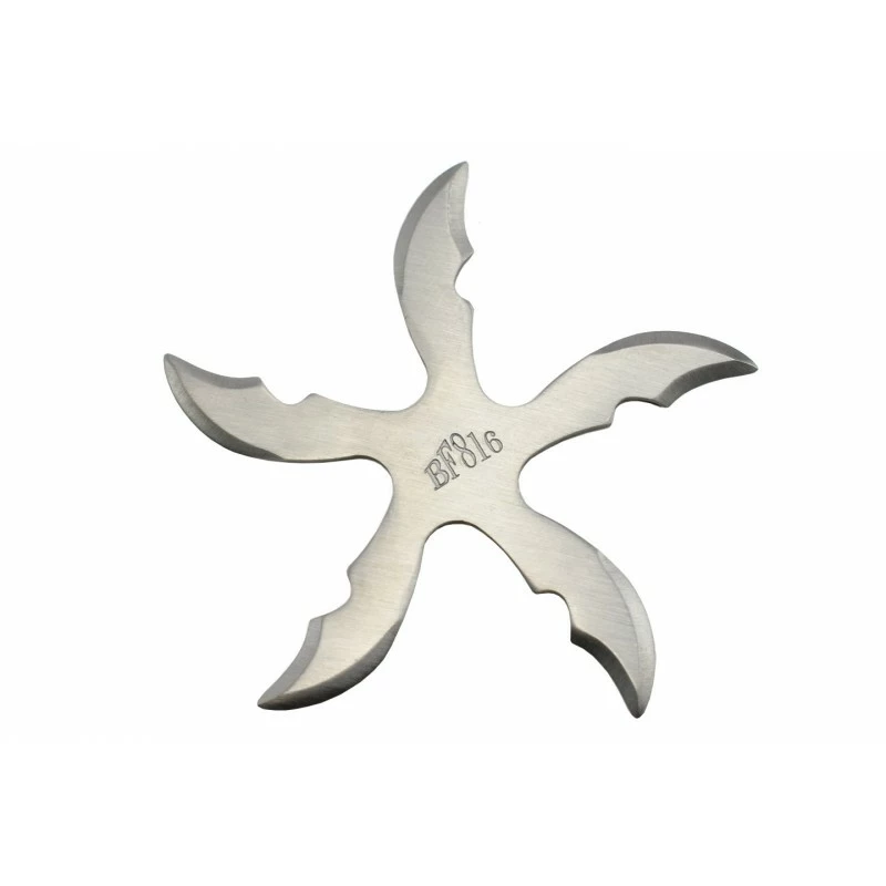 La shuriken NS146 de couleur argentée est une véritable étoile de ninja. En forme d’étoile de mer, elle est composée de 5 branches en acier inoxydable 420 réputé pour sa forte résistance à la corrosion.