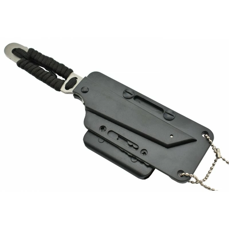 Le manche en acier inoxydable est recouvert de paracorde noire ce qui ne manque pas de maximiser le confort de prise en main. Même en cas d’utilisation intensive, la préhension reste très agréable. Longueur de la poignée : 95mm.