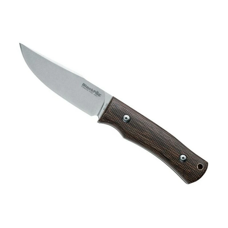 L’Explorator Black Fox est une création d’Alfredo Doricchi. Un nom qui en dit long sur son usage, à savoir l’exploration, la chasse et plus largement l’Outdoor. Couteau fixe ou encore poignard, appelez-ça comme vous voulez, le résultat est le même. La lame mesure 10cm de long, elle est fabriquée en acier 440C et se dote d’une finition stonewashed des plus esthétiques. Elle est marquée par le logo Black Fox et peut être personnalisée, et plus précisément gravée (option facultative en supplément). Le poignard Black Fox Explorator se dote d’un manche en micarta marron mesurant 12cm de long, avec passe-lacet en bout (trou pour cordon). Élégant et agréable à tenir en main, l’Explorator Black Fox est livré avec un étui de ceinture de type kydex avec système de fixation Tek-lok et allume-feu. Un allié de choix pour l’extérieur, la survie en pleine nature et bien d’autres activités Outdoor …