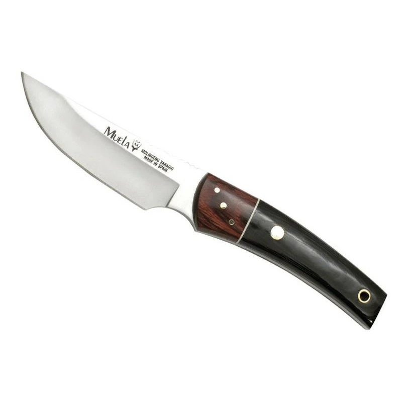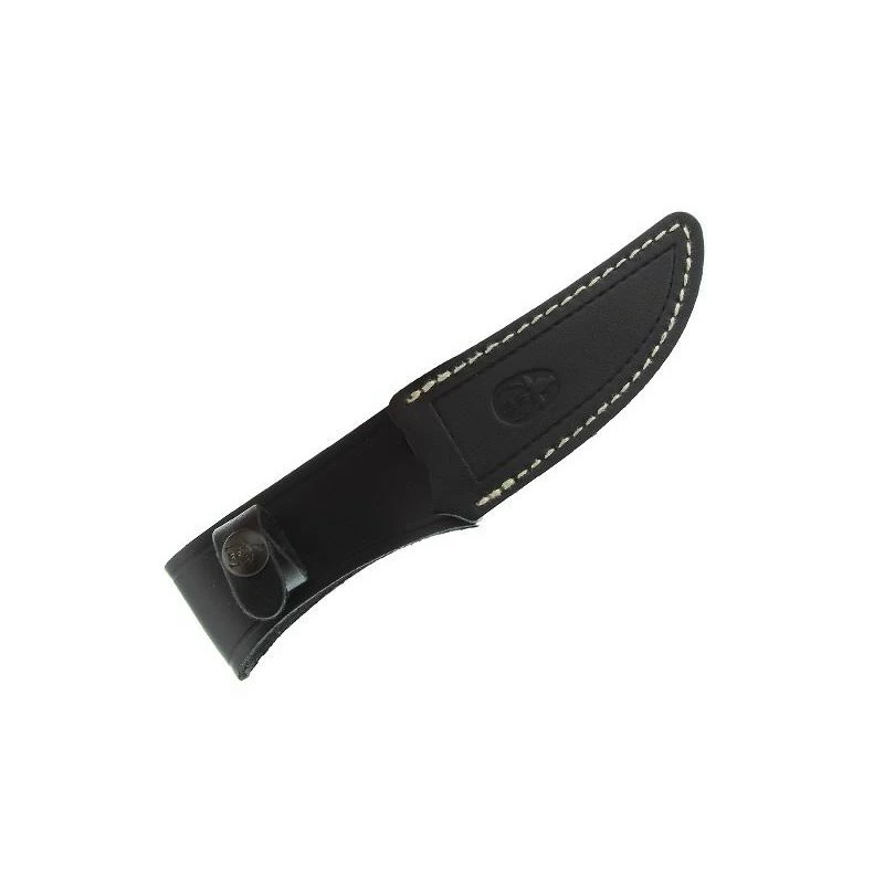 Le poignard Muela LM 9281 dispose d’un look très original. Notamment grâce à son manche conçu en micarta noir et coral, rappelons que le micarta est un matériau composite à base de papier ou coton mélangé avec de la résine. Doté d’un contraste parfait, le manche est très design mais aussi très ergonomique de part sa forme épousant parfaitement la forme de la main. Le Muela LM est un poignard que l’on peut saisir facilement sans jamais ressentir le moindre signe de fatigue. Un modèle qui conviendra parfaitement aux chasseurs ou aventuriers expérimentés. La lame elle, mesure 10cm de longueur avec une fabrication en acier inoxydable X50CrMoV15 (teneur en carbone 0,5%, chrome 15%). Un acier très utilisé en coutellerie du fait qu’il assure un excellent tranchant sans négliger la robustesse (résistance à la corrosion ou rouille). Comme d’habitude, on retrouve sur la lame le logo Muela avec le pays de fabrication, ici l’Espagne (Made in Spain). Elle peut aussi être gravée au niveau des deux faces (recto/verso) au moyen d’un supplément financier. Gardez bien en tête que le poignard de chasse Muela LM 9281 est livré avec son étui en cuir noir Muela avec coutures blanches apparentes. Un joli étui qui assure une protection de tous les instants durant les déplacements et mouvements.