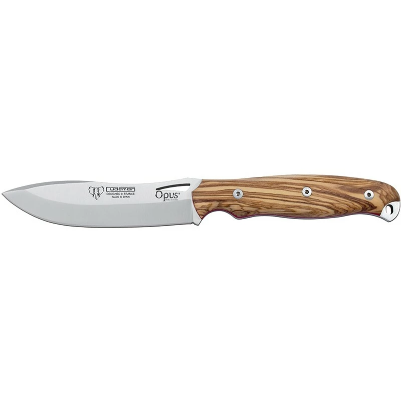 La lame en acier Böhler N695 de 4 mm d’épaisseur et de 10.3 cm de long permet des découpes parfaites avec une grande facilité. Son manche fin et arrondi en olivier satiné avec séparateur rouge, bois dur et résistant, lui confère une prise en main à la fois agréable et confortable, ce qui favorise la performance.