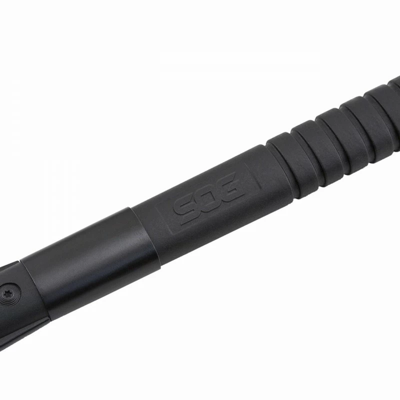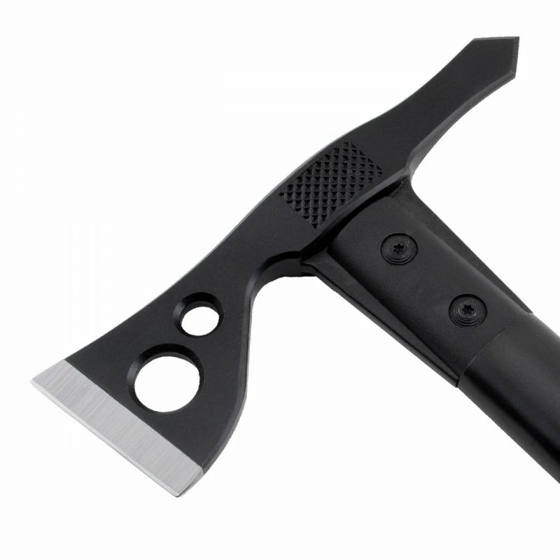 La tĂŞte en acier inoxydable 420 recouverte d’une couche noire rigide est jointe Ă la poignĂ©e en polymère balistique grâce Ă de robustes boulons et une virole en acier pour un meilleur Ă©quilibre et assurer un niveau Ă©levĂ©e d’intĂ©gritĂ©.Â
